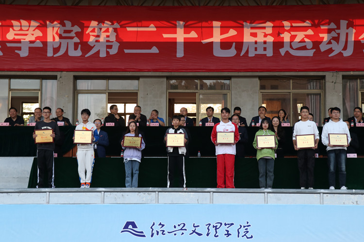 搏击赛场,汗洒金秋。10月29日下午4时,绍兴文理学院第二十七届田径运动会于南山校区落下帷幕。校长王建力,副校长黄坚、陈均土,校纪委书记柯羽,校党委委员、组织部部长宣绍龙,校党委委员、宣传部部长梁瑜以及田径运动会组委会成员在主席台就坐。校党委副书记张宏致闭幕词。学院党委副书记石旭明参加闭幕式,看望慰问我院代表队并与大家亲切交流。本届运动会我院再次取得团体总分第一名,斩获金牌27枚,银牌10枚,铜牌6枚;教工团体总分第三名。