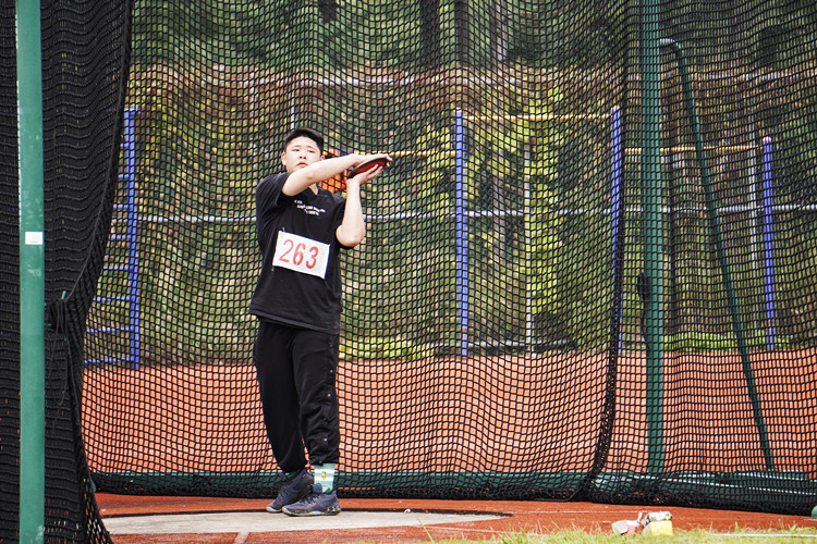 10月22日下午14点,男子铁饼项目比赛拉开帷幕。来自经济管理分院工商管理2001的陈佳琦在预赛第一投中仅投出了20余米,被“寄予厚望”的他成绩不算理想,呈现了一个并不“惊艳”的出场。剩余五次机会,他努力调整心态和状态,屏息凝神,一次次默念着指导老师王建欣传授的最佳发力方式:屈膝、预摆、旋转,将手中紧握的铁饼用力甩向空中,终于,在第三投中将成绩提升到30.06米,闯入30米“大关”。随后,陈佳琦再接再厉,于最后一次投掷机会中取得了32.22米的佳绩,以0.33米的优势打破了2019年31.89米的院记录。