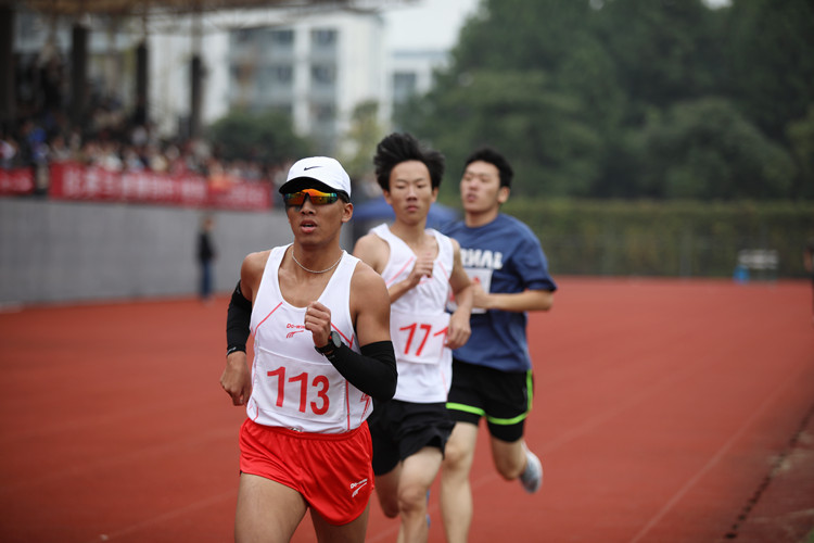 一副墨镜,一顶帽子,古铜色肤色,赛场上激情洋溢地奔跑着一个百人欢呼的身影,他是院马拉松的冠军——万伟国。身为长跑项目1500米和5000米赛事的冠军候选人,他表示身上有“担子”,加上一段时间没有参加训练,不由得有了压力。第一天1500米的赛事,在前面四圈的比赛进程中他始终领先,然而当所有人都理所当然认为他稳居第一时,却在跑向终点的一瞬间被紧追不舍的第二名以0.1秒的优势反超。万伟国有自责,也有失落:“1500米的失利,给了我不小的挫败感,也让我警醒千万不能掉以轻心。”在比赛终点,他向战胜自己的对手伸出了手,两人微笑着友好一握。