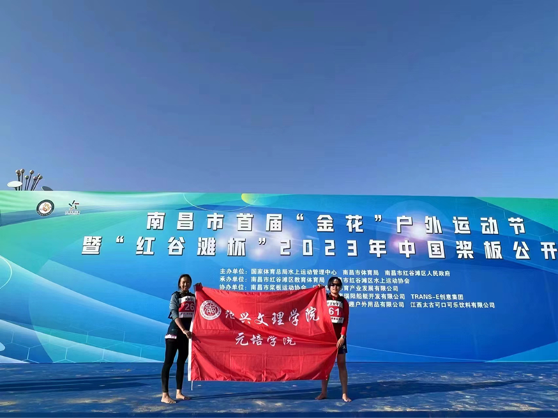 2023年中国桨板公开赛(南昌站)于5月1日上午在南昌市红谷滩区九龙湖公园正式开幕。来自全国各地近30支代表队、近500名运动员在此展开角逐。我院学生赵祯、邓万琪代表学院参与本次桨板比赛,并在决赛中分别取得了高校女子200M竞速赛第五名与高校女子6KM长距离赛第七名的佳绩。