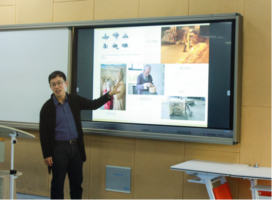 揭牌仪式后,赵刚为同学们作《绍兴铜雕鉴赏与传承创新实践》报告。