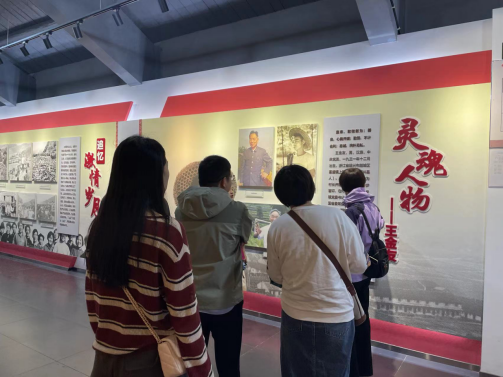 上午9:20 分,分院党员们在文理学院元培校区集合出发,10:00 抵达上旺村后,首先参观了上旺陈列馆。馆内展陈了上千件本地传统农耕的生产生活原件、照片、影像,通过场景模拟、纪录片投放等方式,为参观者带来沉浸式体验,生动展现了上世纪 50 年代上旺人艰苦创业、脱贫致富的场景。