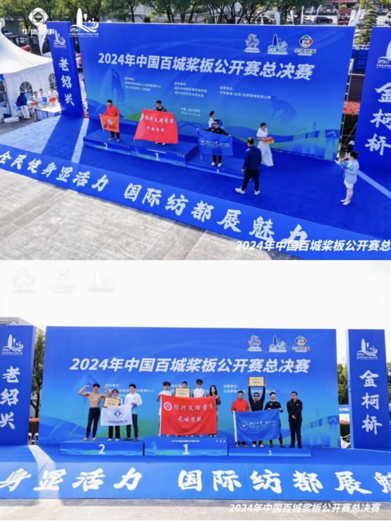 2024年11月23至24日,中国百城桨板公开赛在浙江绍兴柯桥瓜渚湖举行。与浙江大学、杭州电子科技大学、苏州科技职业学院等高校同台竞技。在李柏辰老师指导与带领下,王毅鑫等四名元培学子,在比赛中发扬团结奋进,勇往直前、力争上游的体育精神,最终以3608的总积分位列高校组第一,并荣获“优秀高校”的称号。其中,信息与机电工程分院电信2101班王毅鑫以长距离第一,短距离竞速第二,总积分1860位列第一,成为高校组冠军。
