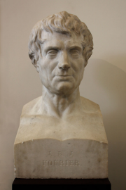 傅立叶(1768-1830)主要贡献是在研究热的传播时创立了一套数学理论。他最早使用定积分符号,改进了代数方程符号法则的证法和实根个数的判别法等。他军校出身,曾随拿破仑军队远征埃及,在科学院也颇有声望。