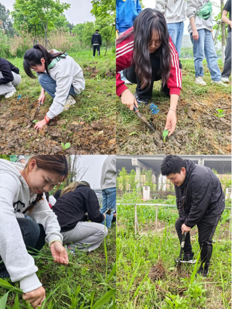 在观察阿姨耕地翻土的动作后,学生们运用农具、使用巧劲耕地,结合上课所学的专业知识,种植培养南瓜、西瓜及葫芦等幼苗。大家分工合作,清理杂草、翻地、栽种、浇水,在劳动中掌握技能,体验快乐。“终于为实验室培育的幼苗找到了新家,我们的心好像也有了归属感。”学生们感慨的说道。