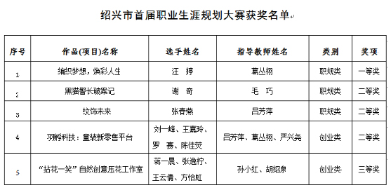 近期,浙江省第九届大学生职业生涯规划与创业大赛、绍兴市首届大学生职业生涯规划大赛、绍兴市第八届创业大赛相继落下帷幕,我院学子斩获佳绩。服装设计与工程1301班刘一峰同学的项目《羽孵科技:童装新零售平台》(指导老师:吕芳萍、葛丛栩、严兴尧)在浙江省第九届职业生涯规划与创新创业大赛中获本研组创业实践类二等奖,实现我院在该赛事创业类项目的突破,竞赛成绩位列全省独立学院第四位;在绍兴市首届大学生职业生涯规划大赛中,我院获1个一等奖,3个二等奖,1个三等奖;在绍兴市第八届大学生创业大赛中,我院共有6个创业项目获奖,其中获得二等奖1项、三等奖3项、优胜奖和鼓励奖各1项。