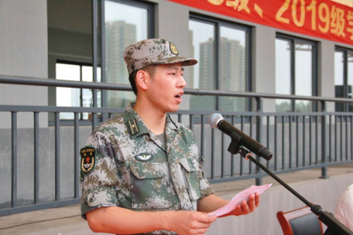 军训团教官代表、省陆军预备役步兵师一团司令部作训股股长朱实锋表示,将高标准、严要求完成此次军训任务,全面提升同学们的素质,为同学们大学美好的四年生活开好头、起好步。建筑工程分院工程管理专业1801班谭海辉同学代表军训团全体学员郑重承诺,将珍惜军训时光,以饱满的热情和昂扬的斗志投入军训,把在军训中学到的优良作风和习惯贯彻到今后的学习、工作和生活中,积极展现我院大学生良好的精神风貌。